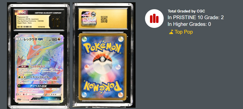 CGC 10 PRISTINE Rayquaza GX #109 Japanese Pokemon Sky-Splitting Charisma POP 2