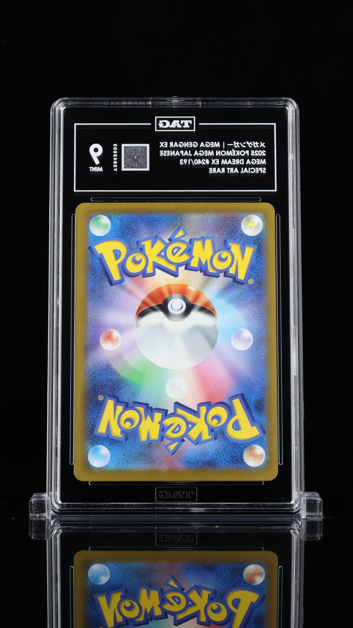 メガゲンガー Mega Gengar ex #240/193 Pokémon MEGA Japanese TAG 9 Don't miss your chance to own this stunning メガゲンガー Mega Gengar ex from the highly sought-after Pokémon MEGA Japanese set! Professionally graded a solid 9 by Technical Authentication & Grading (TAG), this card is a must-have for serious collectors and Pokémon fans alike. With its vibrant artwork and impressive grade, this collectible is ready to be the centerpiece of your collection or the perfect gift for any Pokémon enthusiast. This authentic card, manufactured by MEGA in 2025, comes with official TAG certification and a unique certification number for added peace of mind. Secure this rare find today and add significant value and prestige to your Pokémon TCG collection! Graded: Yes Game: Pokemon Set: Pokémon MEGA Japanese Character: メガゲンガー Mega Gengar ex Certification Number: Y3943503 Grader: Technical Authentication & Grading (TAG) Manufacturer: MEGA Year Manufactured: 2025 Grade: 9 Card Number: 240/193 Listed With Mascot.