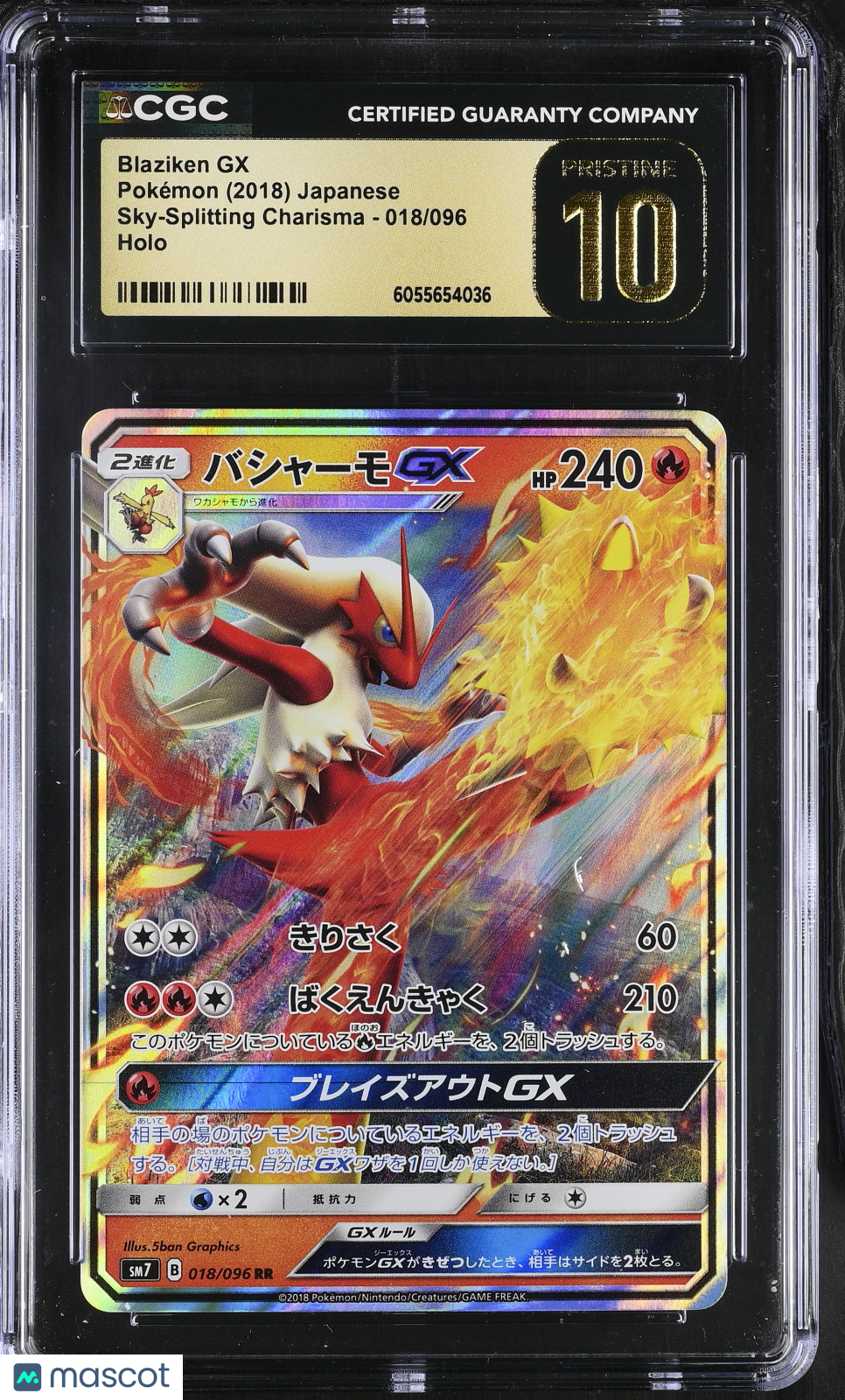 Pokemon Blaziken GX #018/096 Japanese Sky Splitting Charisma CGC 10 Gem Mint 6b