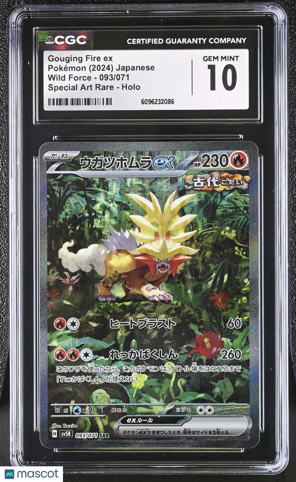 You are purchasing a Pokemon Gouging Fire ex #093/071 Japanese Special Art Rare CGC 10. You will receive the exact item in the photographs. Be sure to check our store for hundreds of other graded cards just like this one. Follow our store to receive exclusive discounts on graded cards and other Pokemon products. Join us during our LIVE stream events where we showcase graded cards, raw singles, and booster packs. Thank you for looking. Listed With Mascot.