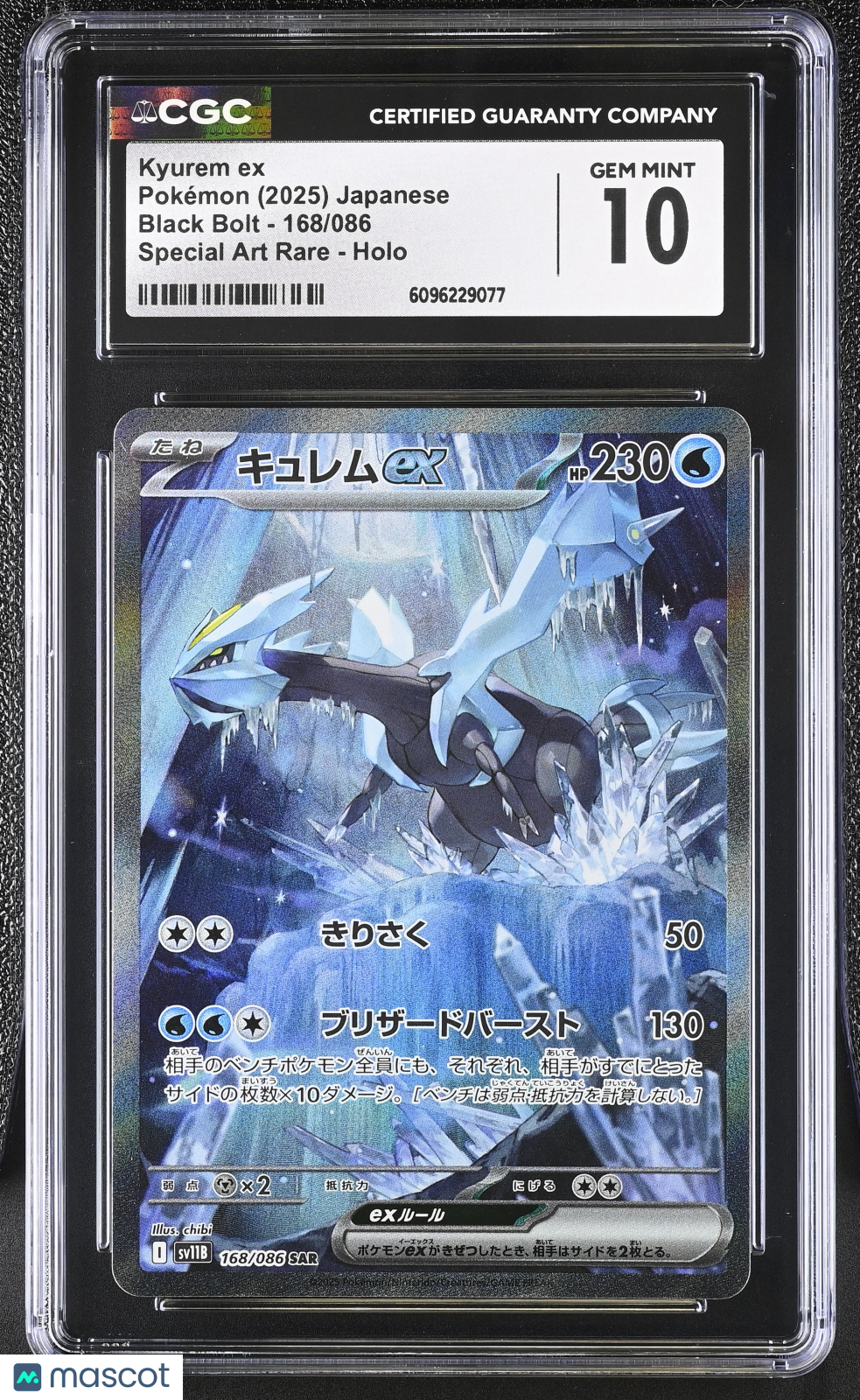 You are purchasing a Pokemon Kyurem ex #168/086 Japanese Special Art Rare CGC 10. You will receive the exact item in the photographs. Be sure to check our store for hundreds of other graded cards just like this one. Follow our store to receive exclusive discounts on graded cards and other Pokemon products. Join us during our LIVE stream events where we showcase graded cards, raw singles, and booster packs. Thank you for looking. Listed With Mascot.
