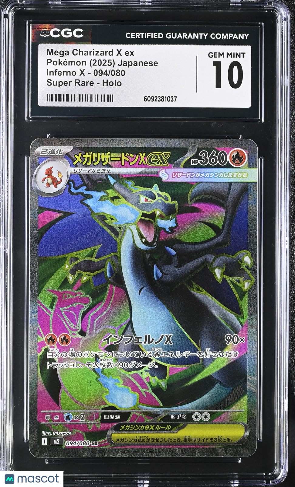 You are purchasing a Pokemon Mega Charizard X ex #094/080 Japanese Super Rare CGC 10. You will receive the exact item in the photographs. Be sure to check our store for hundreds of other graded cards just like this one. Follow our store to receive exclusive discounts on graded cards and other Pokemon products. Join us during our LIVE stream events where we showcase graded cards, raw singles, and booster packs. Thank you for looking. Listed With Mascot.