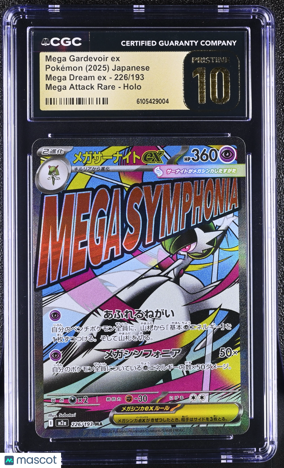 You are purchasing a Pokemon Mega Gardevoir ex #226/193 Japanese Mega Attack Rare CGC 10. You will receive the exact item in the photographs. Be sure to check our store for hundreds of other graded cards just like this one. Follow our store to receive exclusive discounts on graded cards and other Pokemon products. Join us during our LIVE stream events where we showcase graded cards, raw singles, and booster packs. Thank you for looking. Listed With Mascot.