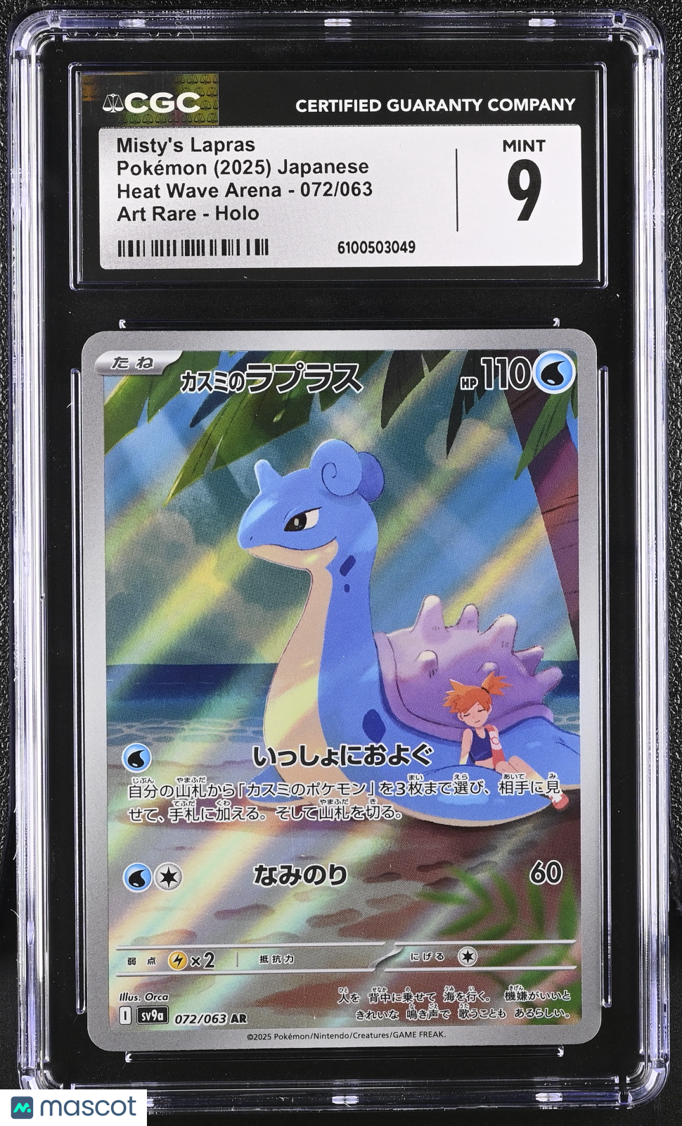 You are purchasing a Pokemon Misty's Lapras #072/063 Japanese Art Rare CGC 9 A3. You will receive the exact item in the photographs. Be sure to check our store for hundreds of other graded cards just like this one. Follow our store to receive exclusive discounts on graded cards and other Pokemon products. Join us during our LIVE stream events where we showcase graded cards, raw singles, and booster packs. Thank you for looking. Listed With Mascot.