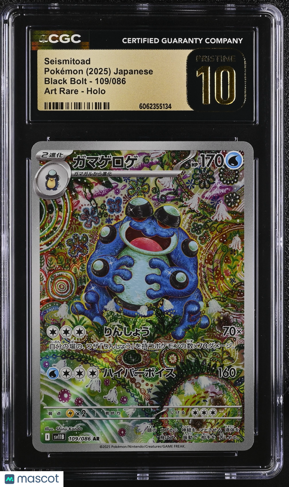 Pokemon Seismitoad #109/086 Japanese Black Bolt Art Rare CGC 10 Pristine 3c