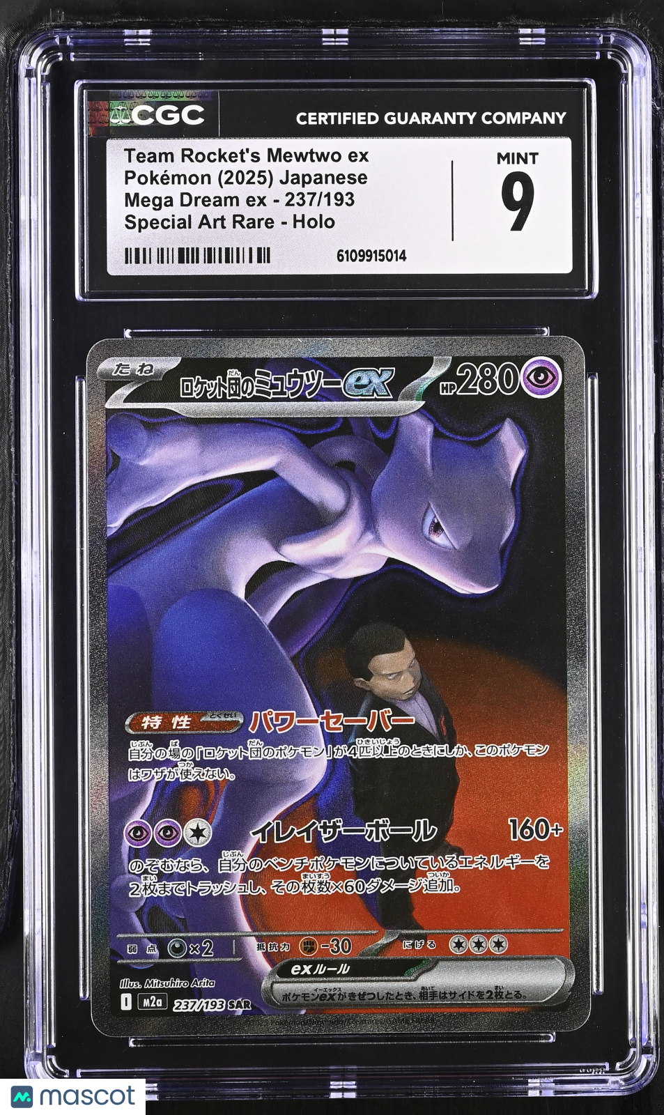 Pokemon Team Rocket's Mewtwo ex #237/193 Japanese Mega Dream CGC 9 Mint L1