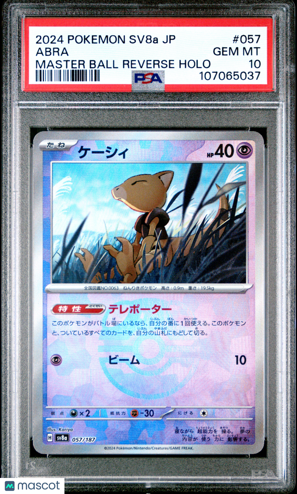 Pokemon Terastal Fest EX Abra 057 Japanese Master Ball Reverse Holo PSA 10 5c
