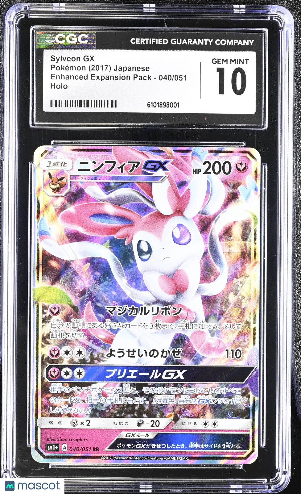 You are purchasing a Pokemon Sylveon GX #040/051 Japanese 040/051 CGC 10 A4. You will receive the exact item in the photographs. Be sure to check our store for hundreds of other graded cards just like this one. Follow our store to receive exclusive discounts on graded cards and other Pokemon products. Join us during our LIVE stream events where we showcase graded cards, raw singles, and booster packs. Thank you for looking. Listed With Mascot.